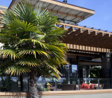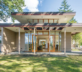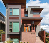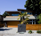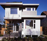 フラットルーフと長く伸びた庇が印象的なバンクーバーの都市住宅