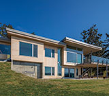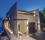 景勝地の斜面に建つ地下室付き2階建て住宅