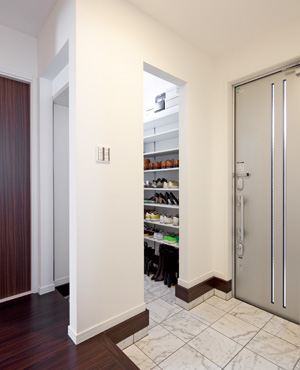 ▲玄関をいつもすっきり保つために設けたシューズクロークは、使いやすい2ウエイ動線