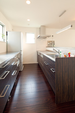 ▲キッチンは既製品をアレンジして美しくまとめ、使い勝手にも配慮